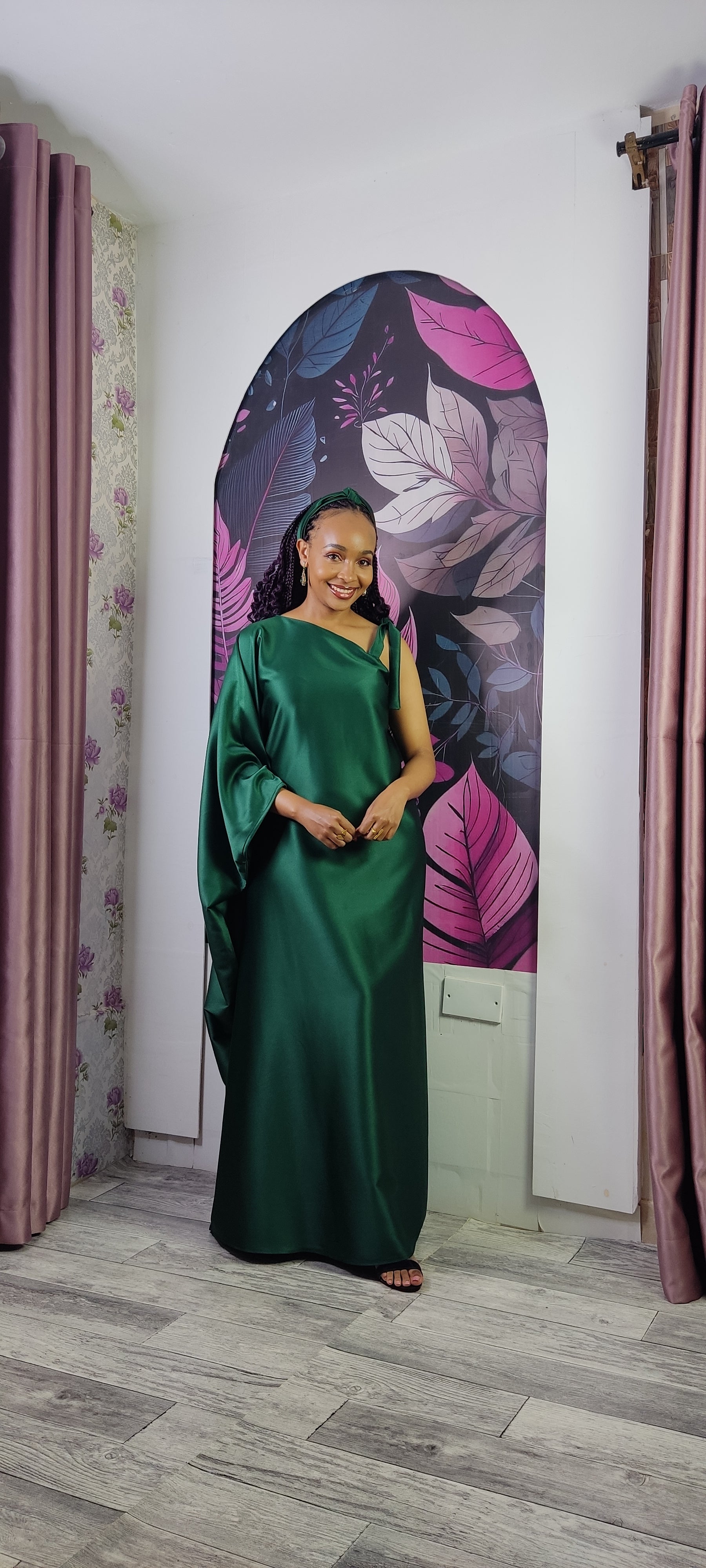 5. Aurora Emerald Green One Shoulder Kaftan